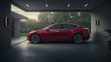 自宅の駐車場で充電している電気自動車の画像